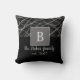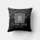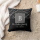monogram custom pillow grey and black abstract design with text to personalise for unique home decor. Original abstract art copyright Ann Powell all rights reserved.