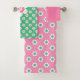 Monogram Custom Retro Daisies Pink and Green Bath Towel Set