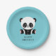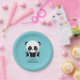 Monogram Cute Panda Personalised Bubble Gum Blue Paper Plate