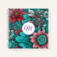Monogram, Cyan Blue, Red, whimsical flowers Notebook