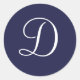 Monogram D, White on Navy Blue, Classic Round Sticker
