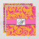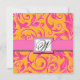 Monogram Pink & Orange Damask Monogram Wedding Invitations - Square 5.25x5.25 Size