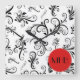 Monogram - Damask, Ornaments, Swirls - Black White Square Wall Clock
