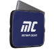 Monogram Dark Blue Minimalist Name White Text Men Laptop Sleeve