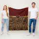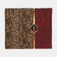 Monogram Dark Red and Leopard Animal Print Fleece Blanket
