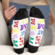 Personalised just for you, these novelty Saturday Day Of The Week socks in fun rainbow colours with a custom monogram initial for the ultimate gift. These one of a kind monogram socks feature your choice of monogram letters in a bold font scattered among a collage pattern of SAT (short for for SATURDAY) in a mix of cute thin handwritten and fun silly fonts in red, orange, yellow, green, blue and purple on a white background. Personalised Saturday novelty socks in colourful rainbow hues with a monogram of your choice makes a cute gift for almost any occasion. Check out my other available days for a personalised set of Days Of The Week socks for adults so you can create a full set in rainbow colours or mix and match colour choices. Fun for men and women, custom monogram Saturday socks in fun rainbow colours are a cute choice for Father's Day, Mother's Day, Birthdays, Holidays or as a gag gift.