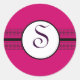 Monogram Deep Pink Black Lace Deep Raspberry Classic Round Sticker