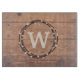 Monogram design for Christmas with wreath and snow decoration on rustic wooden background