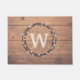 Monogram design for Christmas with wreath and snow decoration on rustic wooden background