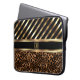 Monogram Design | Gold Stripes and Leopard Skin Laptop Sleeve