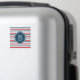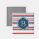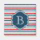 Nautical themed design with monogram decoration on blue, white, red and grey striped background