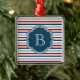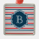 Nautical themed design with monogram decoration on blue, white, red and grey striped background