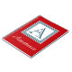 Nautical style monogram design with striped squares decoration on red background