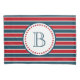 Nautical themed design with monogram decoration in round shape with stars on blue, red and white striped background