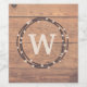 Monogram design for Christmas with wreath and snow decoration on rustic wooden background