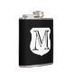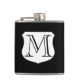 Monogram drink flask | personalizable gift for men with elegant script text. Customisable black background colour. Cool gift idea for masculine men. Personalise it with a name or monogram initials. Alcohol / Drinking present.