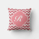 Monogram Dusty Rose and Deep Red Chevron Cushion