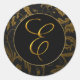 Black and gold Monogram seals with a beautiful scrolling script text art on elegant floral damask. These stickers add a unique touch of class to your wedding invitations!