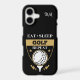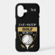 This attractive phone case features a golf logo in pale gold and white. The image shows a golf ball on a tee, and the text says "EAT SLEEP GOLF REPEAT". Your two initial monogram is in white at the top.
