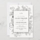 Monogram Elegant Black Floral Line Art Wedding Invitation