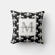 Monogram Elegant Black White Fleur de lis Pattern Cushion