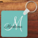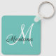 Monogram Elegant Modern Simple Girly Teal Key Ring