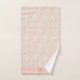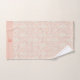 Lovely peach towels with an elegant white damask, fleur de lis pattern. Peach border for your monogram, name or initials.