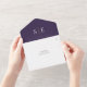 This chic minimalist all-in-one wedding invitation can be personalized with your monogram initials and wedding day information on a purple background. The invitation includes a perforated RSVP card that can be individually addressed or left blank for you to handwrite your guest's address details. Designed by Thisisnotme©