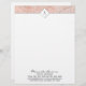 Elegant minimalist business letterhead with signature, profession, and contact info. Rose gold (pink) marble, black and white monogram, modern fonts. Ideal for many professionals (interior designer used as example), modern, streamlined and trendy.