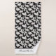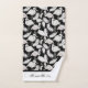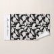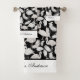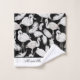 Monogram this black and white bath towel set with your names, initials or any text. A pattern of white swans with feathers on black. Very stylish and chic. See our matching bedroom/bathroom products in our store.
