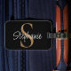 Monogram Elegant Script Name Black Gold Luggage Tag