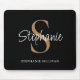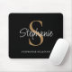 Monogram Elegant Script Name Black Gold Mouse Pad