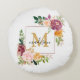 Monogram Elegant Watercolor Rose Floral Botanical Round Cushion