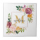 Monogram Elegant Watercolor Rose Floral Botanical Tile