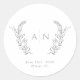 Modern rustic botanical leafy crest bride and groom initials monogrammed wedding sticker envelope seal or favour label featuring classy traditional typography with trendy accents.