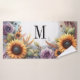 Monogram Fall flowers and sunflowers watercolor Bath Towel Set