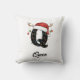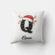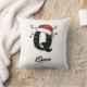 Monogram Family Christmas Antlers Santa Hat Throw Pillow | Rustic Initial Personalised Holiday Cushion