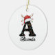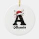Monogram Family Christmas Antlers Santa Hat PHOTO Ceramic Tree Decoration