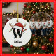 Monogram Family Christmas Antlers Santa Hat PHOTO Ceramic Tree Decoration