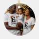 Easily personalise this rustic initial photo keepsake with your family's last name initial on the front and a cherished photo on the back. You can also customise the text if you wish to add the full family name, a year, or a custom holiday message. Crafted from high-quality ceramic, these ornaments are designed to last for years, becoming a beloved part of your family's holiday traditions.