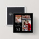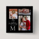On this stylish black button is a monogram letter in the corner i then 3 photos with the text in the middle with family name and date where you can customise to your liking with your own photos and family name.