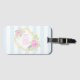 Monogram Fancy Luggage Tag w/ Business Card Slot. Fancy floral monogram with roses and blueberry. Very ornate and cheerful, with slightly Victorian look and feel. Pastel colours: pink, blue, green. Light blue stripes. Pink and golden monogram (golden is not real gold but colour).