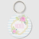 Monogram Fancy Pink Roses Blueberry Keychain. Fancy floral monogram with roses and blueberry. Very ornate and cheerful, with slightly Victorian look and feel. Pastel colours: pink, blue, green. Light blue stripes. Pink and golden monogram (golden is not real gold but colour).