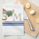 Monogram Farmhouse Kitchen Towel Blue Stripe Herbs