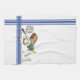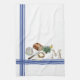 Bring farmhouse warmth and watercolor charm to your kitchen with this personalised towel in our Bread & Herbs Collection. Classic ticking stripes in Butter Dish Blue (also available in red, sage green, or gold) frame a cosy still life: a fresh loaf of bread, a slice spread with butter, a floral butter dish, and a tied bundle of herbs. A butterfly hovers at the lavender blooms, adding a delicate finishing touch.