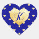 Monogram Faux Foil Gold Hearts Pattern on Blue Heart Sticker