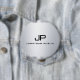 Monogram Faux Silver Metallic Look Template Elegant Modern Huge Round Button.
