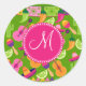 Monogram Fiesta Party Sombrero Cactus Limes Pepper Classic Round Sticker