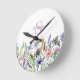 Monogram floral botanical name round clock. Easy to change the text. Pretty watercolor wildflower design.