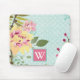 Monogram | Floral Garden, Blue Background Mouse Pad